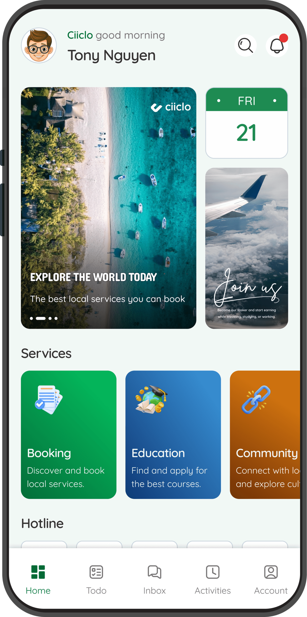 Users discover destinations by booking services from local.
