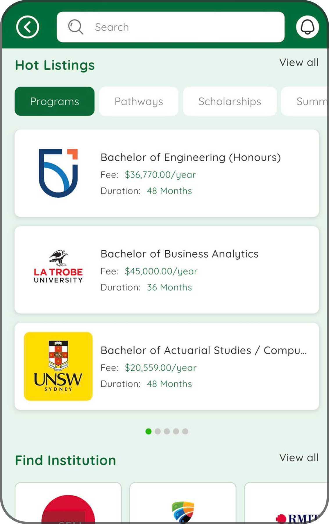 Tính năng giúp bạn tìm chương trình tuyển sinh, học bổng và visa hoặc đăng tin tuyển sinh để kết nối người dùng. Tìm hiểu thêm