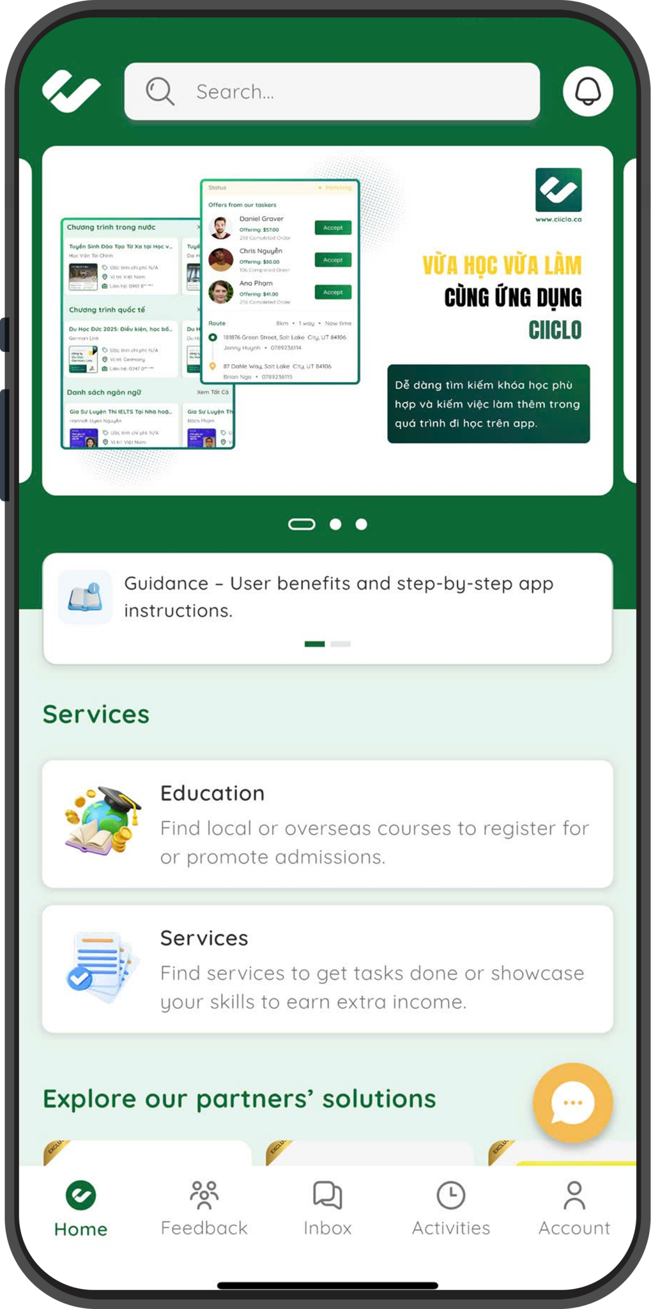 Ciiclo là nền tảng tìm kiếm chương trình tuyển sinh trong nước và du học hoặc kiếm việc làm thêm để gia tăng thu nhập trong quá trình đi học.