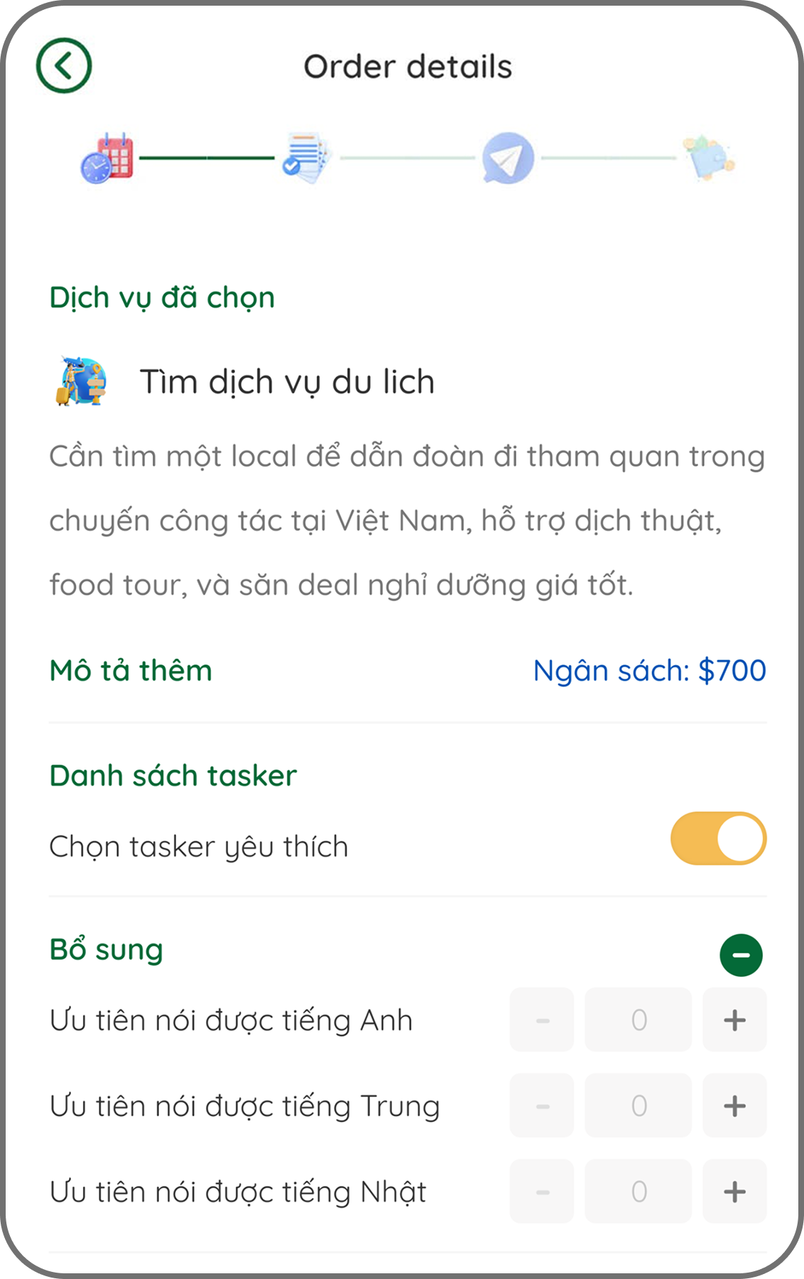 Tính năng giúp bạn đặt dịch vụ giúp việc hoặc hoàn thành công việc linh hoạt để kiếm thêm thu nhập. Tìm hiểu thêm